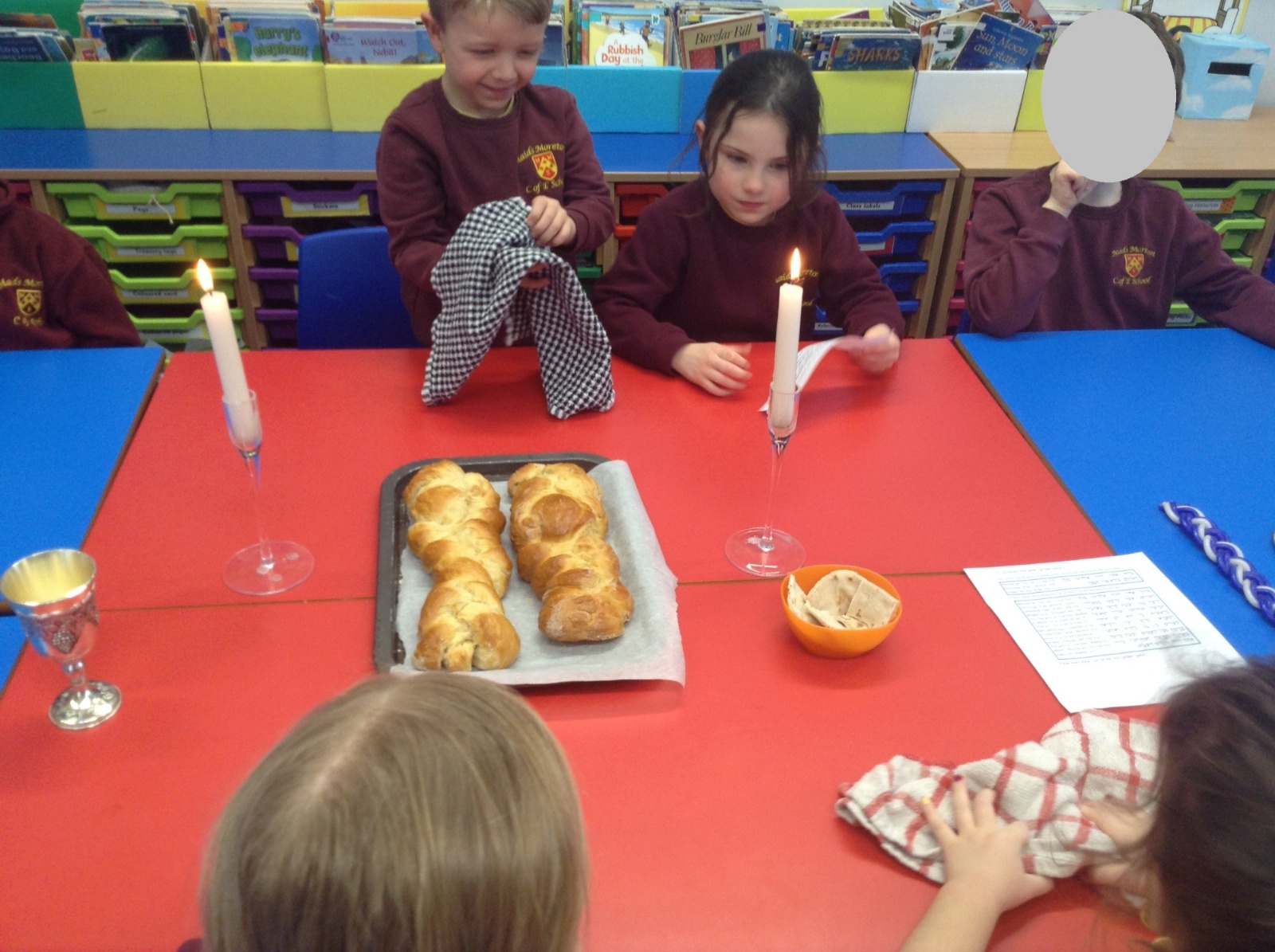 Our Key Stage 1 children re-enacted the Jewish Shabbat meal in their RE lesson this week. They also made their own challah bread in preparation. This really brought their learning to life.