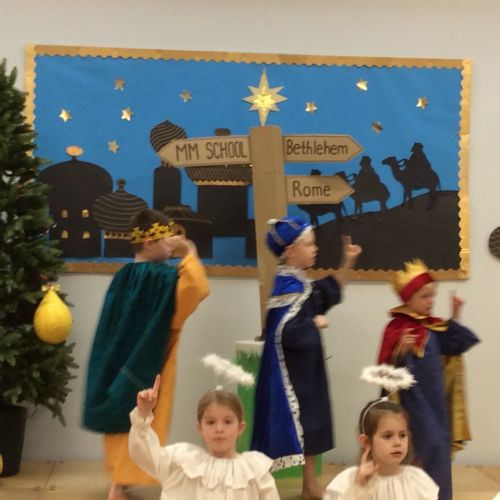 Our Key Stage 1 class enthralled the audience with their delightful rendition of "Baubles." The children performed brilliantly, and impressed us with their superb acting, dancing and singing.